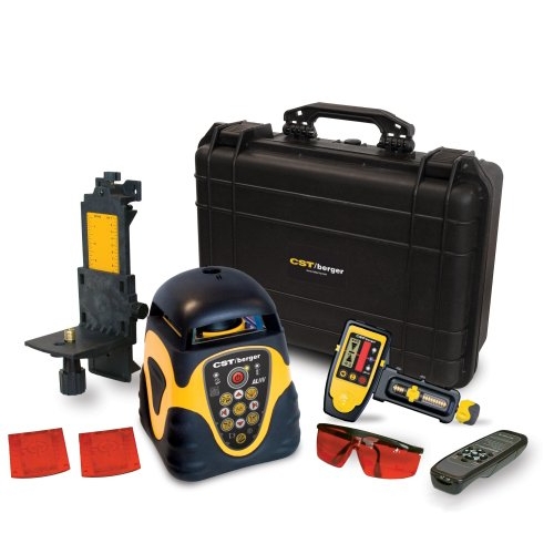 Комплект поставки: лазерный нивелир, приемник лазерного излучения, пульт ДУ, очки, магнитные марки (2шт.), настенное крепление, аккумуляторный блок, зарядное устройство,4 бат. AA, кейс.