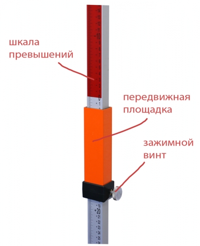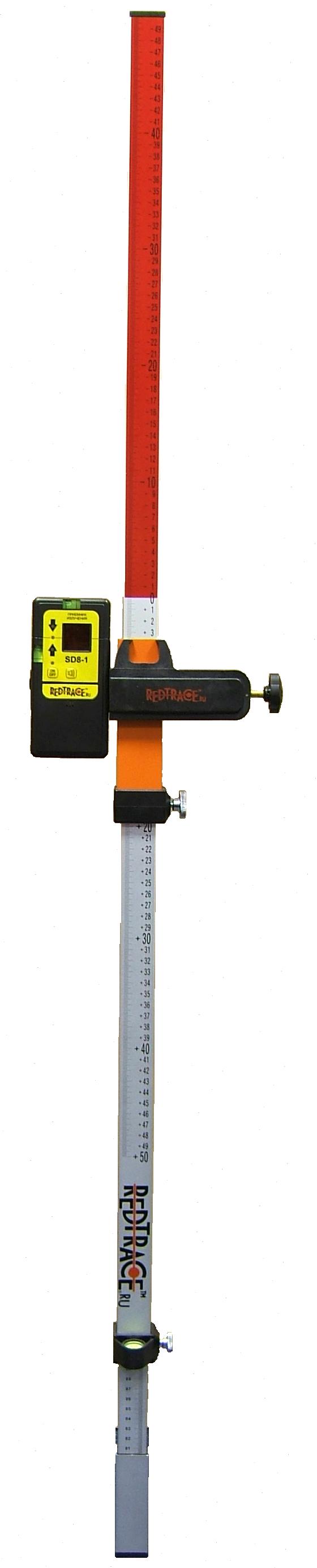 Конструкция рейки RT-25L REDTRACE позволяет выставлять нулевую отметку рейки на уровень горизонта нивелира. Пользователь может снимать величину превышений непосредственно с рейки. Это особенно востребовано при работах с несколькими точками стояния. В этом случае пользователю не приходится постоянно учитывать в расчетах разницу высот точек, на которых установлен прибор, что в результате сказывается как на скорости, так и на достоверности результатов. Для работы с лазерными нивелирами по шкале рейки перемещается кронштейн, к которому может крепиться приемник лазерного нивелира.
